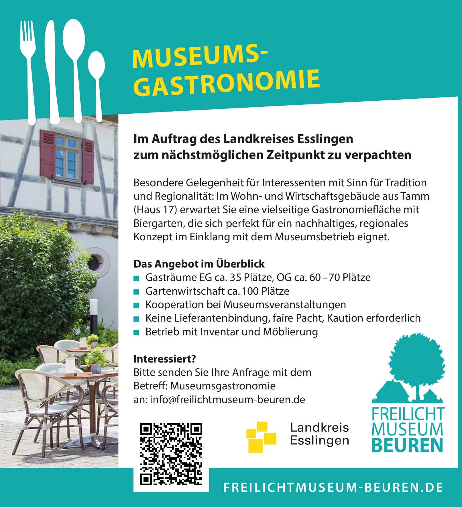 Das Freilichtmuseum Beuren freut sich, Ihnen die Museumsgastronomie vorstellen zu können. Diese befindet sich in der Gartenwirtschaft in der Hofanlage Mannsperger, bestehend aus dem stattlichen Wohn- und Wirtschaftsgebäude aus Tamm und der Scheuer aus Gärtringen.