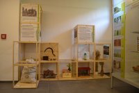 Es wurde dargestellt, wie mühsam, doch letztlich von Erfolg gekrönt, diese historische, regional relevante Sorte „Schwäbischer Dickkopf-Landweizen“ gerettet werden konnte. Acht Themenbereiche mit unterschiedlichen Exponaten, von der früheren Getreidevielfalt über das Verschwinden der alten Sorten bis hin zur Rettung speziell des Dickkopfweizens wurden angesprochen. Das nicht immer einfach zu vermittelnde Thema wurde durch eine ausgeklügelte Ausstellungsarchitektur für Groß und Klein verständlich präsentiert. Themeninseln, in Quadern aufeinander aufbauend und gut im Ausstellungsraum platziert, nahmen die Besucherinnen und Besucher mit auf Entdeckungsreise in die Welt des Getreides. Besondere Mitmachstationen in der Ausstellung machten spielerisch mit dem Thema und dem „täglichen Brot“ vertraut. So konnte beispielsweise bei einer Fühlstation dem Dickkopfweizen sinnlich nachgespürt werden. Bei den Exponaten zeugten 24 Gläser mit Körnerproben unterschiedlicher Getreidearten von der früheren Vielfalt des Getreides auch in unserer Region.