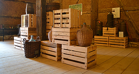 Seit der Saison 2015 können sich BesucherInnen im Freilichtmuseum Beuren noch intensiver mit dem Thema „Streuobst“ beschäftigen. Das Museum, das inmitten eines prächtigen Bestandes an Obstbäumen angesiedelt ist, vertieft seinen Schwerpunkt zum Thema „Obstbau“ mit einer kleinen Ausstellung in der aus Beuren selbst stammenden Scheuer aus dem Jahr 1449, der „Schlegelscheuer“.
