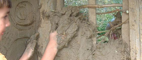 - Dieses Flechtwerk füllen wir mit dem Lehm-Strohgemisch