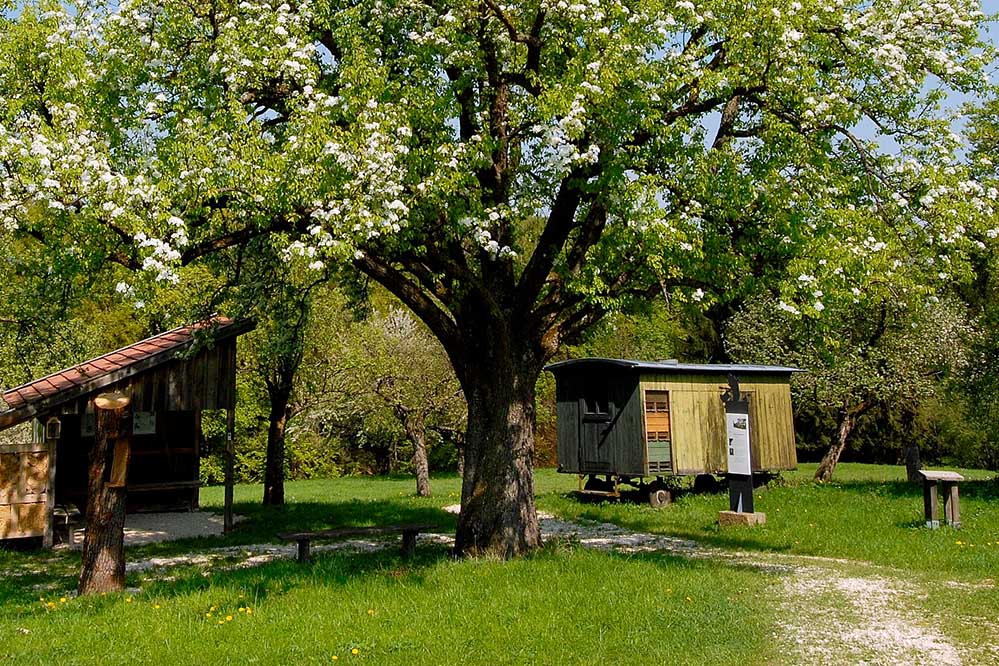Mit anschaulichem Material aus einem Leiterwagen (z. B. Honig, Wachskerzen, Obst, Naturtextilien) entdecken die Schülerinnen und Schüler an einer Wiesenstation mit Tischen und Bänken, wie Bienen leben, was sie fressen und welche Aufgaben Königin, Drohne und Arbeiterin im Stock übernehmen. Spielerische Elemente, kurze Impulse und kleine Mitmachaktionen sorgen für Abwechslung und aktives Lernen.