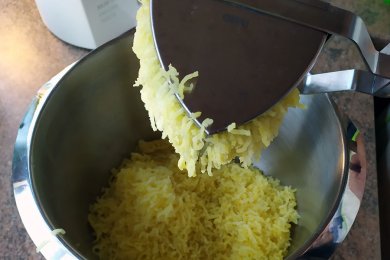 1. Kartoffeln weichkochen, schälen und noch warm durch die Spätzlespresse drücken, abkühlen lassen.