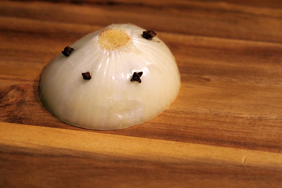 Mit 1,5 l Wasser ablöschen, die mit den Nelken gespickte halbe Zwiebel, Lorbeerblätter und die Alb-Linsen dazugeben und weichkochen.