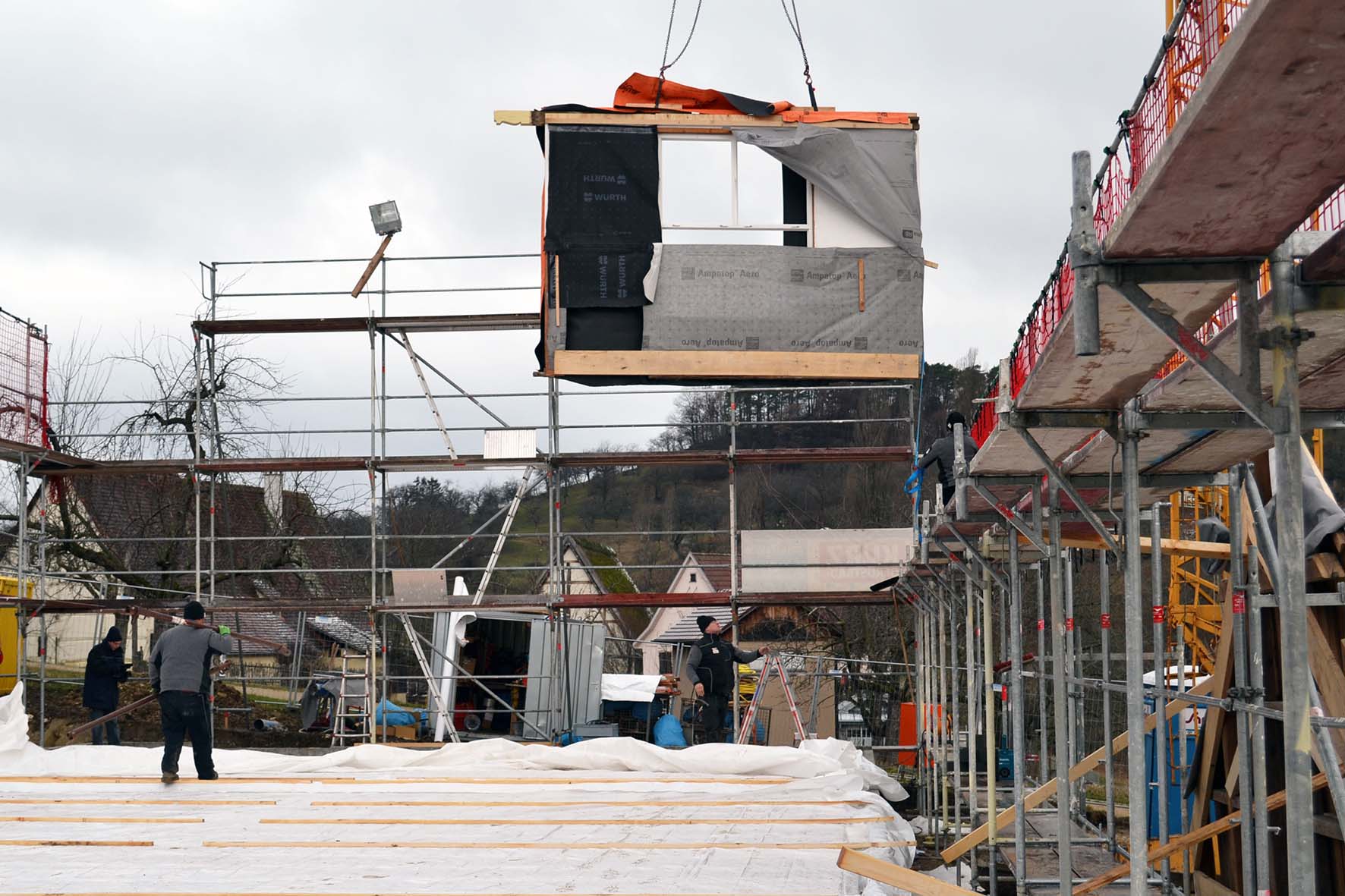 Wiederaufbau des Gartensaales aus Geislingen im Freilichtmuseum Beuren