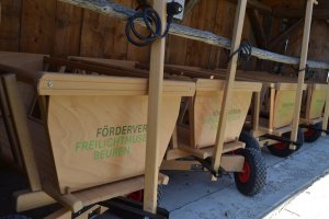 Leiht an der Kasse kostenlos gegen Pfand einen Handleiterwagen für euer Gepäck aus.