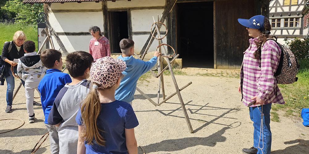 Mit Holzkegeln und Reifen, Springseilen und Stelzen, Bällen und Murmeln können Kinder ausprobieren, womit ihre Großeltern ihren Spaß hatten. In der Spielekiste schlummern einige Überraschungen zum Ausleihen. Mitglieder des Teams Gespielte Geschichte flanieren in Kostümen durch das Museumsgelände und verteilen Himbeerbonbons.
